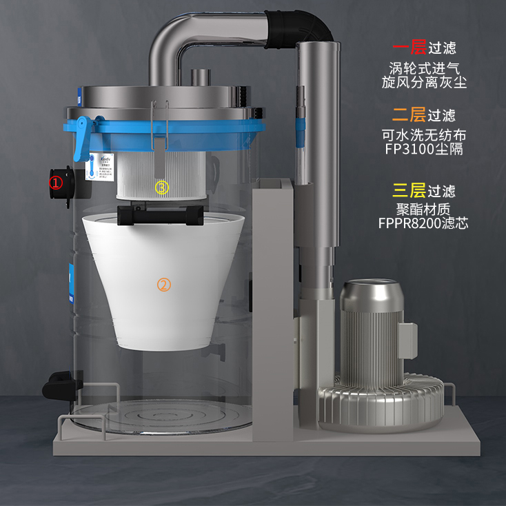 SK-510是一款工業吸塵器,整機采用工業設計風格,美觀硬朗,結構緊湊。機器集塵桶采用不銹鋼制作,桶壁光滑易清理;配有晃動振塵、泄壓閥。