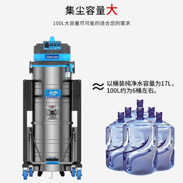 DL-3010B是一款工業(yè)型的產(chǎn)品,每小時(shí)可以清理1300cm2左右,3.6KW功率和100升的集塵桶;上下分離桶,桶壁光滑易清理,分離桶上配有推手,清理垃圾時(shí)輕松方便。機(jī)器配有置物箱,方便放置一些配件和工具。適用于工廠、倉庫或建筑工地的清理。