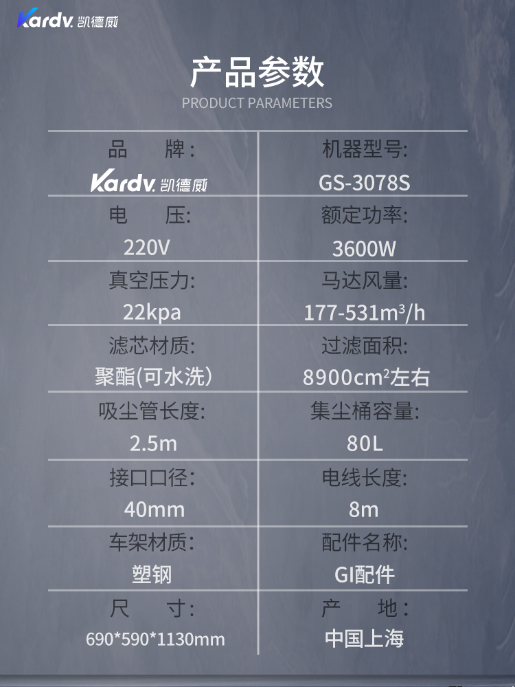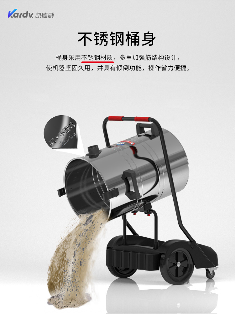 GS-3078S是一款工業(yè)型吸塵器,集塵桶為80L,為不銹鋼材質(zhì),配有車架,在移動時輕巧方便,車架底座為PP材質(zhì),底座上有置物格,可放置配件或工具方便收納和使用;可以用在工廠、倉庫或建筑工地等場所清理灰塵等,在商業(yè)環(huán)境中也可以使用。