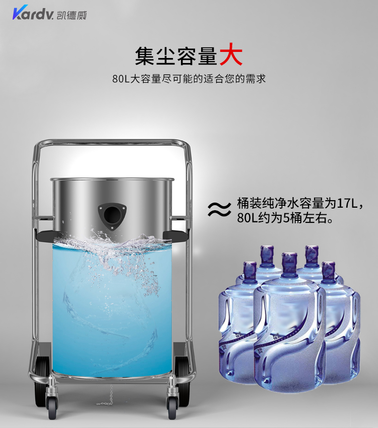 GS-3078B是一款工業型吸塵器,集塵桶為80L,為不銹鋼材質,配有不銹鋼車架,在移動時輕巧方便;可以用在工廠、倉庫或建筑工地等場所清理灰塵等,在商業環境中也可以使用。