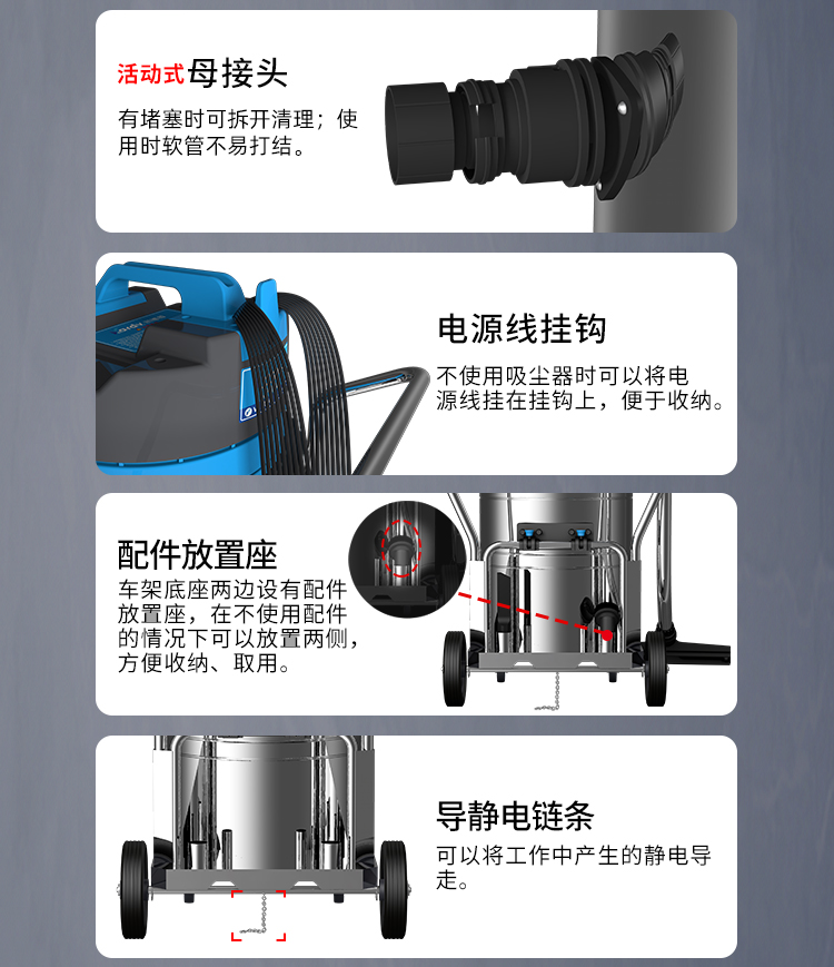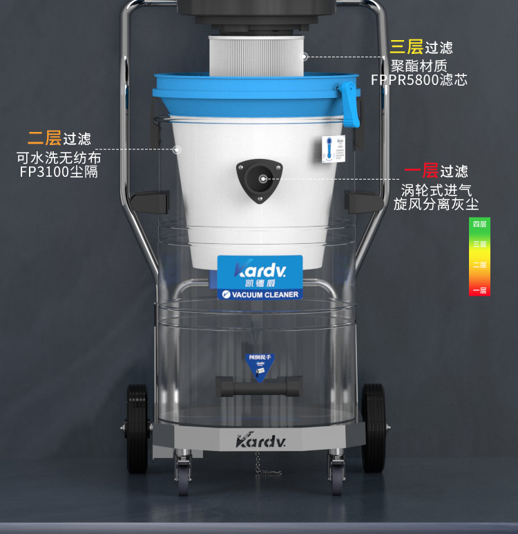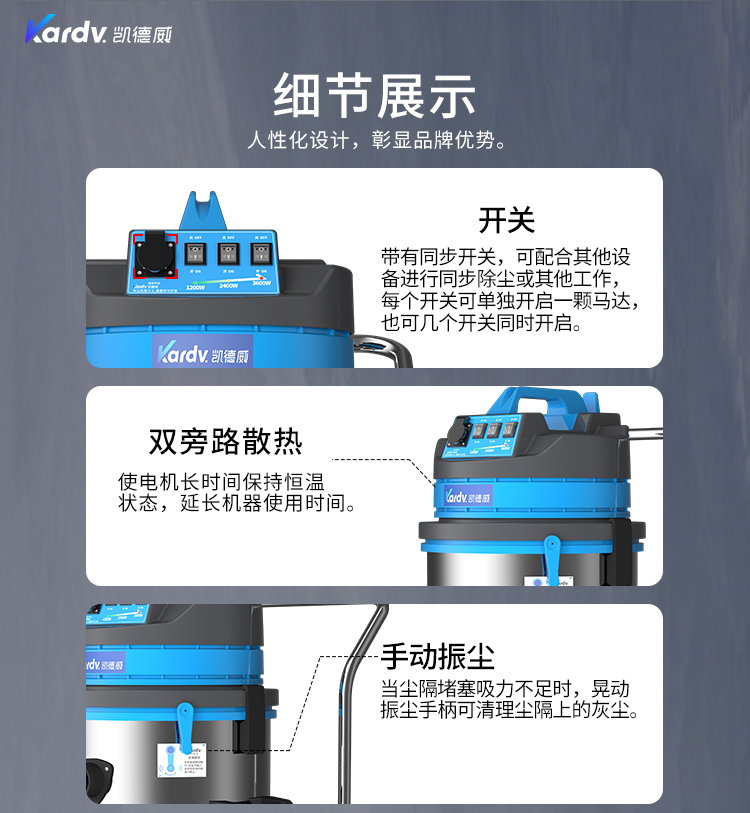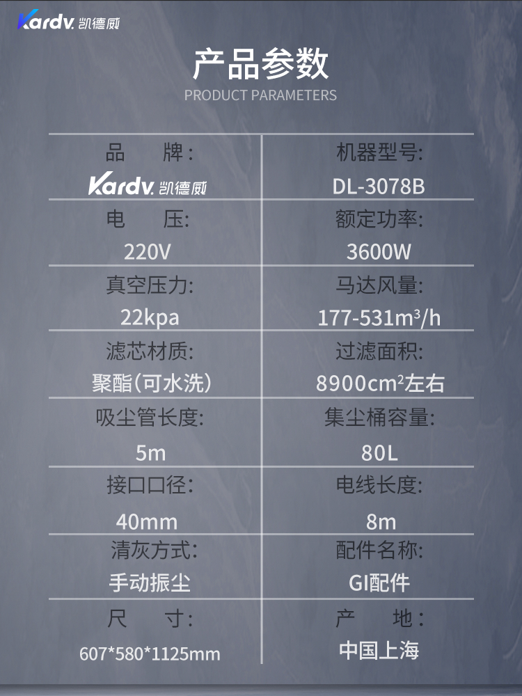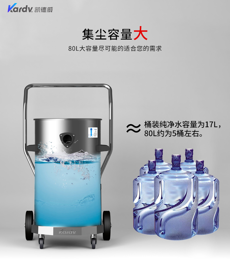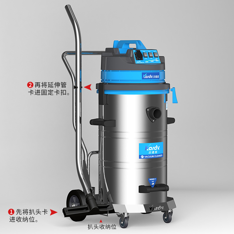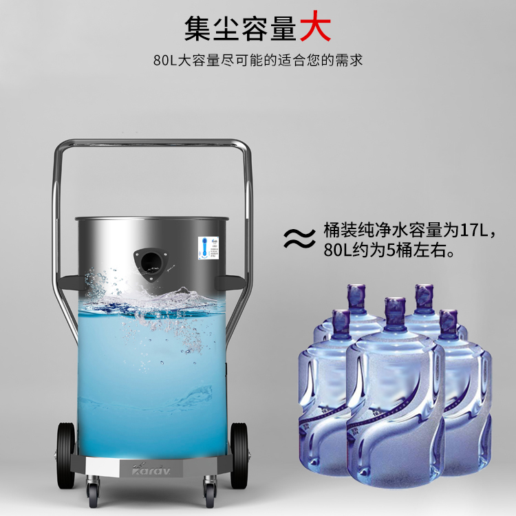 DL-3078B是一款工商業(yè)吸塵器,有3顆馬達(dá),可單獨或聯(lián)合開啟;集塵桶為80L,為不銹鋼材質(zhì),配有不銹鋼車架,在移動時輕巧方便;配有手動晃動振塵,在使用的過程中,左右晃動振塵手柄就可以起到清理過濾器的作用;可以用在工廠、倉庫等場所清理灰塵等,在商業(yè)環(huán)境中也可以使用。