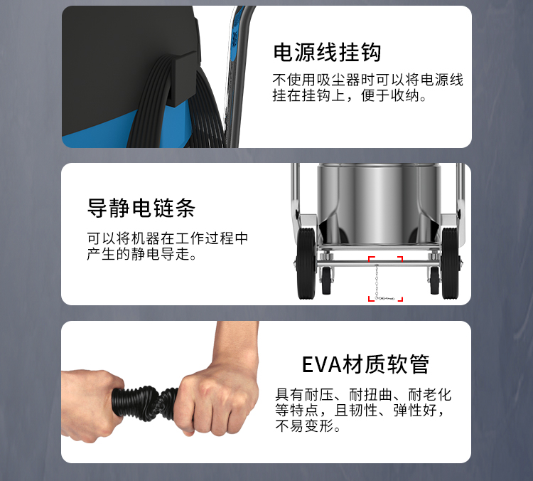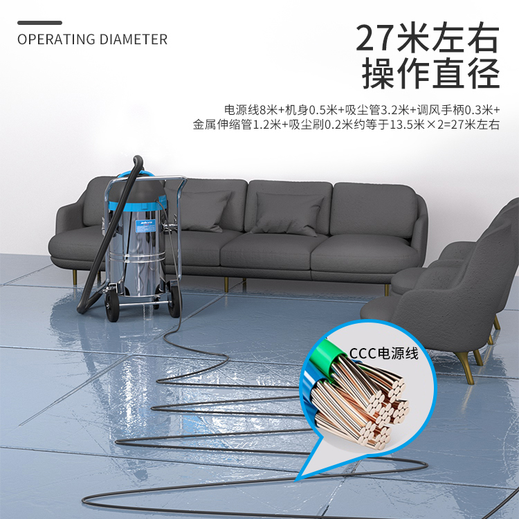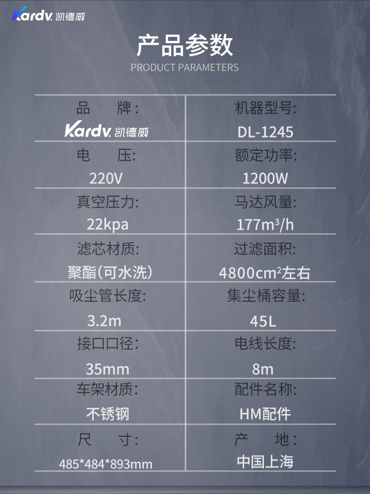 DL-1245是一款干濕兩用型吸塵器,集塵桶為45L不銹鋼材質(zhì);散熱上采用上下氣道分離設(shè)計(jì);配有置物架,可以防止工具和配件,方便使用;可以用在倉庫、廠房等;也可與其它產(chǎn)品配套使用,也可用作將廢料收集;也可使用在普通的商業(yè)、企業(yè)環(huán)境,比如一般的辦公室、客房等。